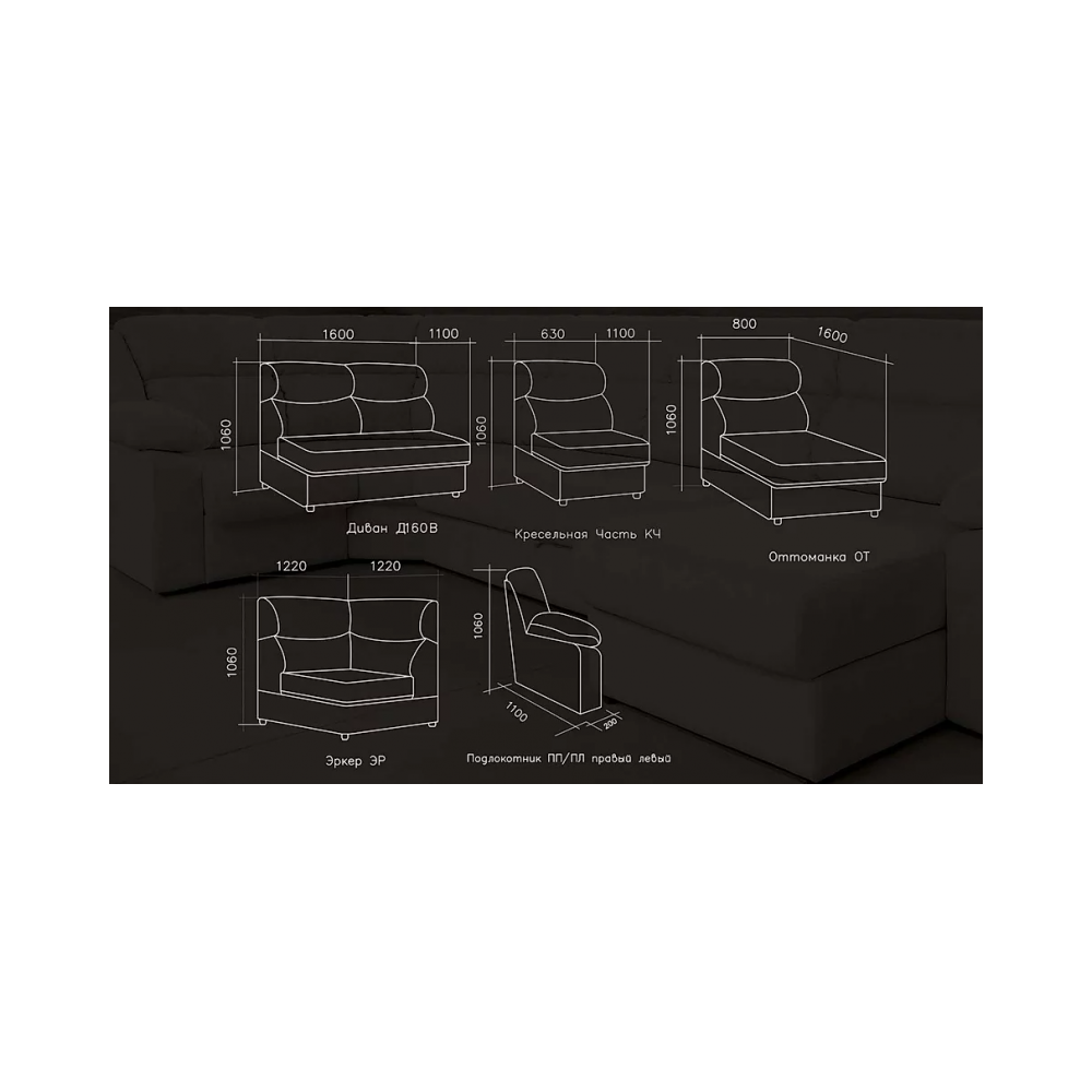 | Тип дивана: | прямой, модульный |