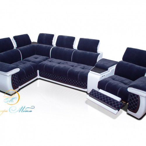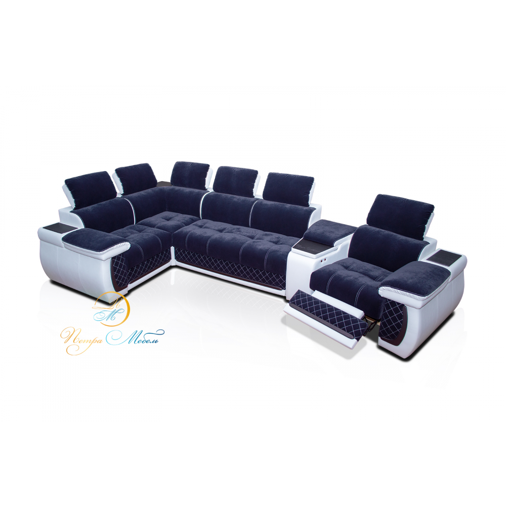 Угловой п-образный модульный диван Айпетри Де Люкс (сапфировый) [petra-5807]